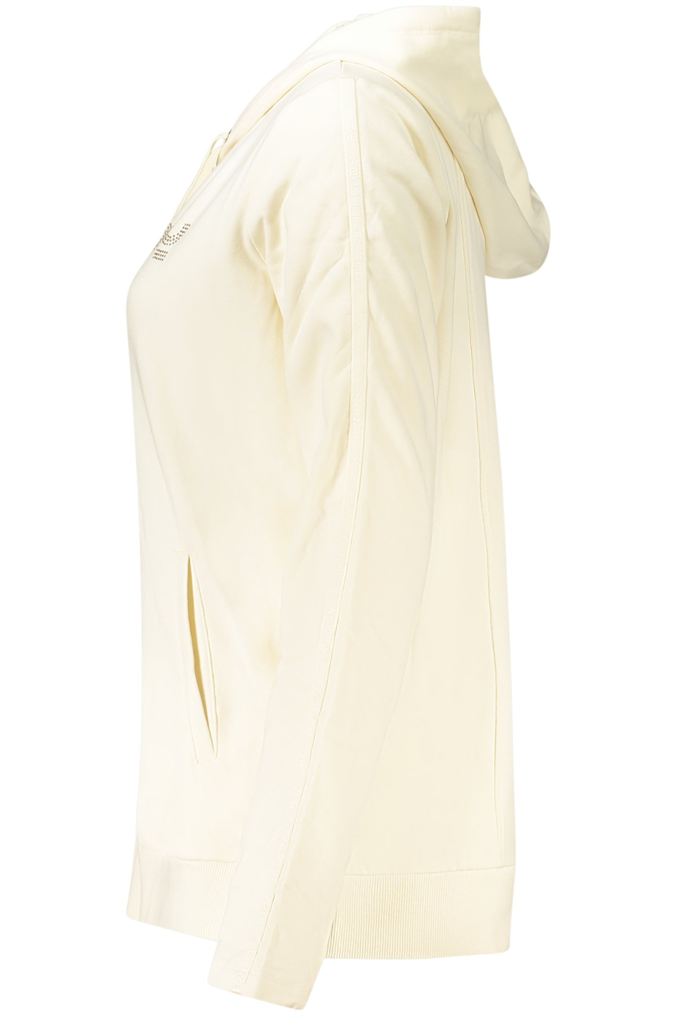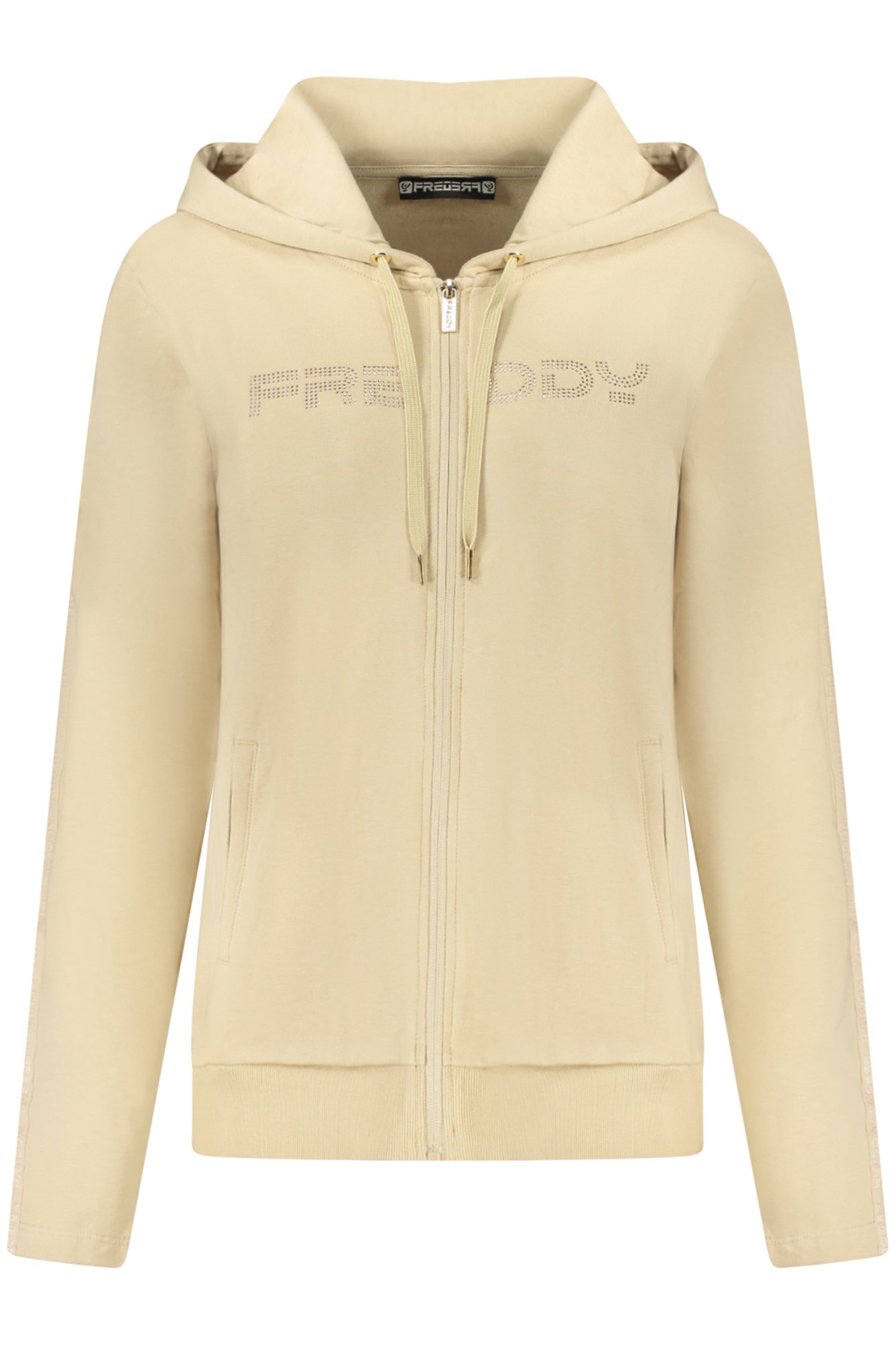 FELPA MANICHE LUNGHE CON CAPPUCCIO, FELPATA, 2 TASCHE, ZIP, APPLICAZIONE STRASS, LOGO