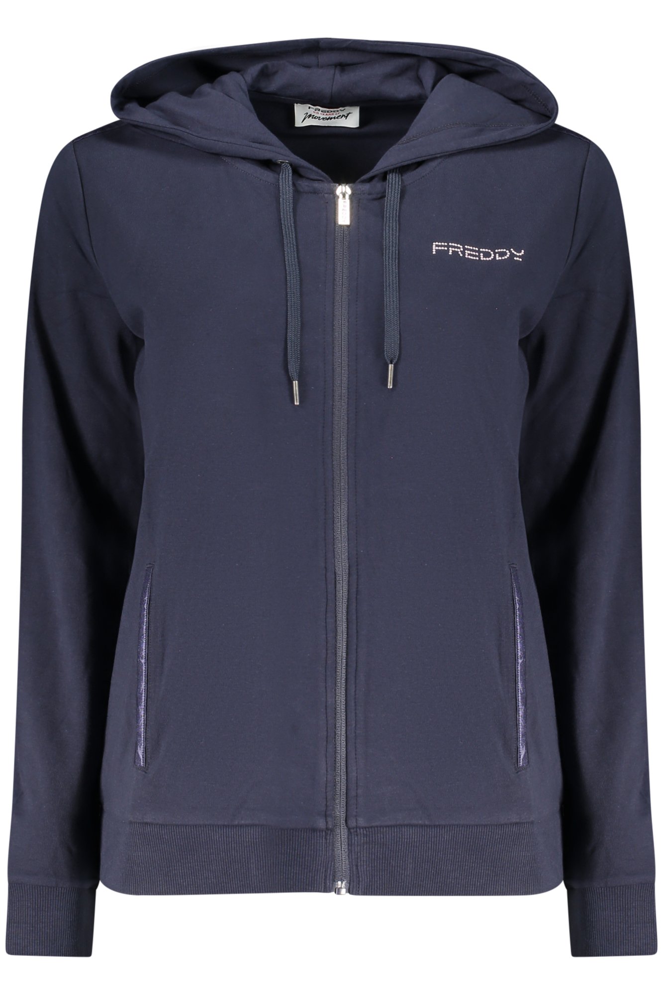 FELPA MANICHE LUNGHE CON CAPPUCCIO, 2 TASCHE, DETTAGLI A CONTRASTO, ZIP, APPLICAZIONE, LOGO