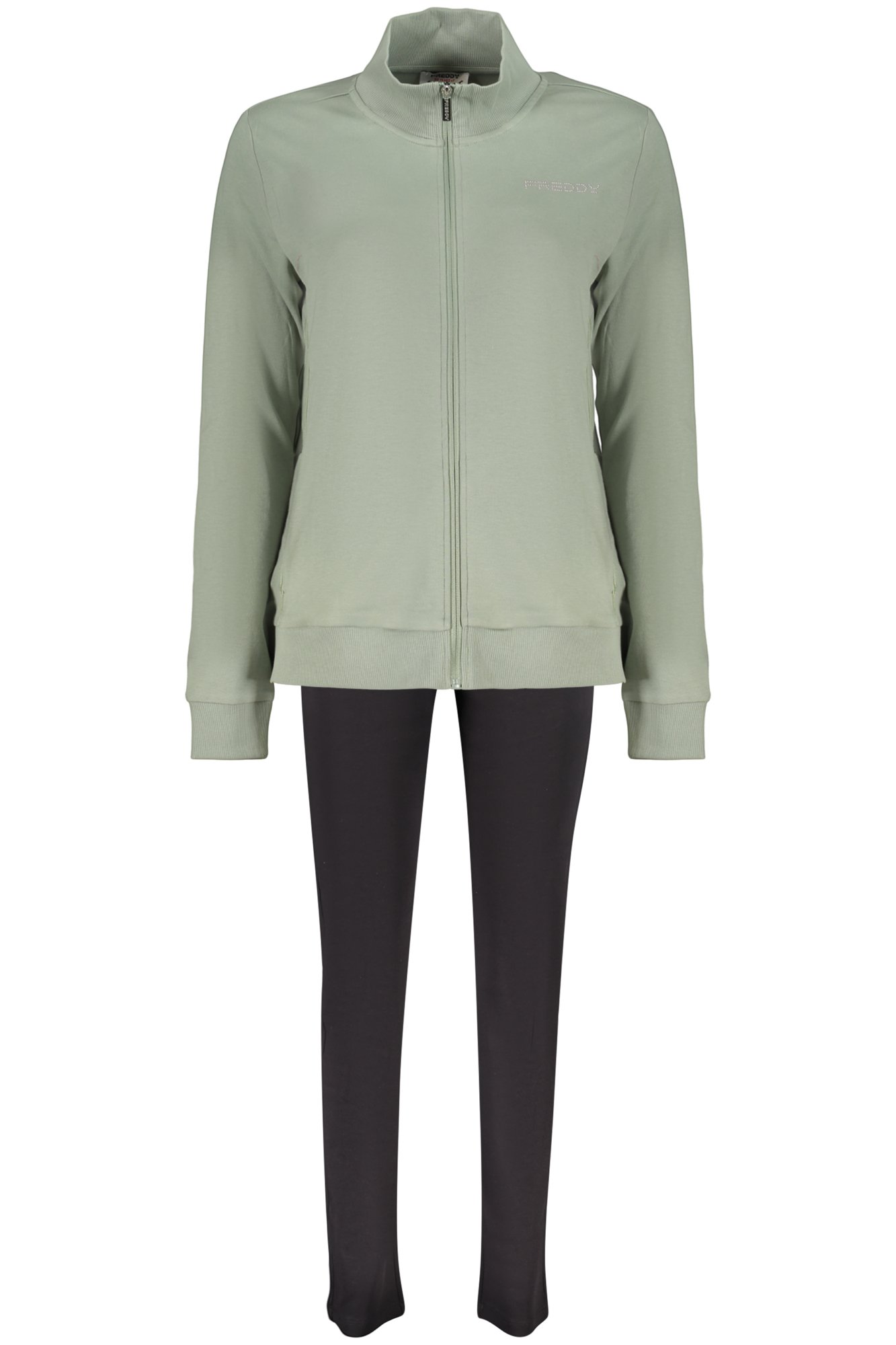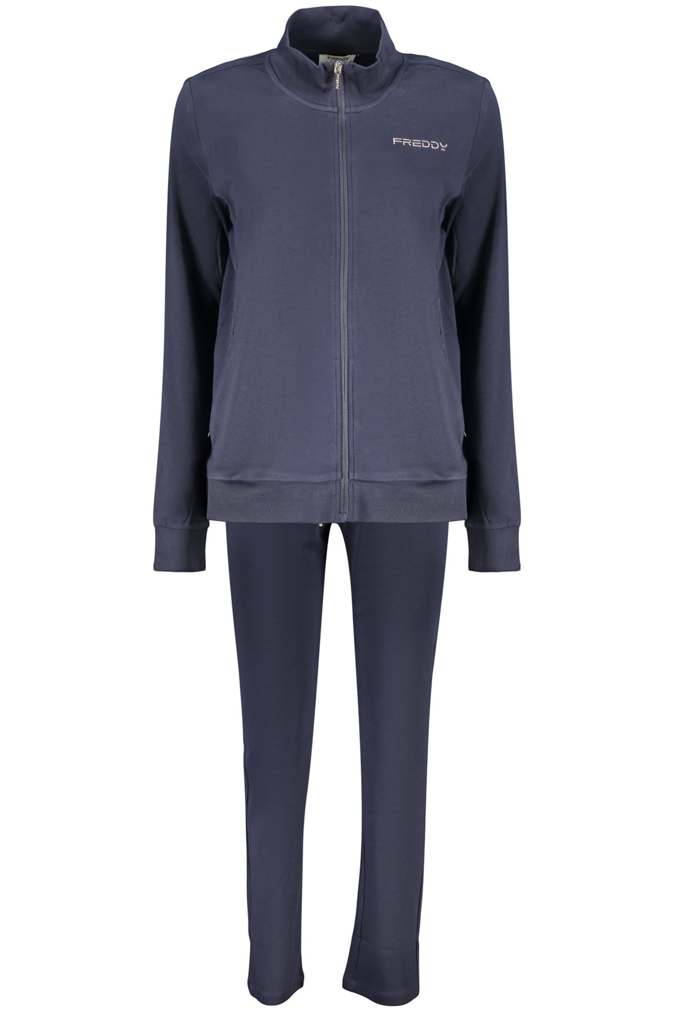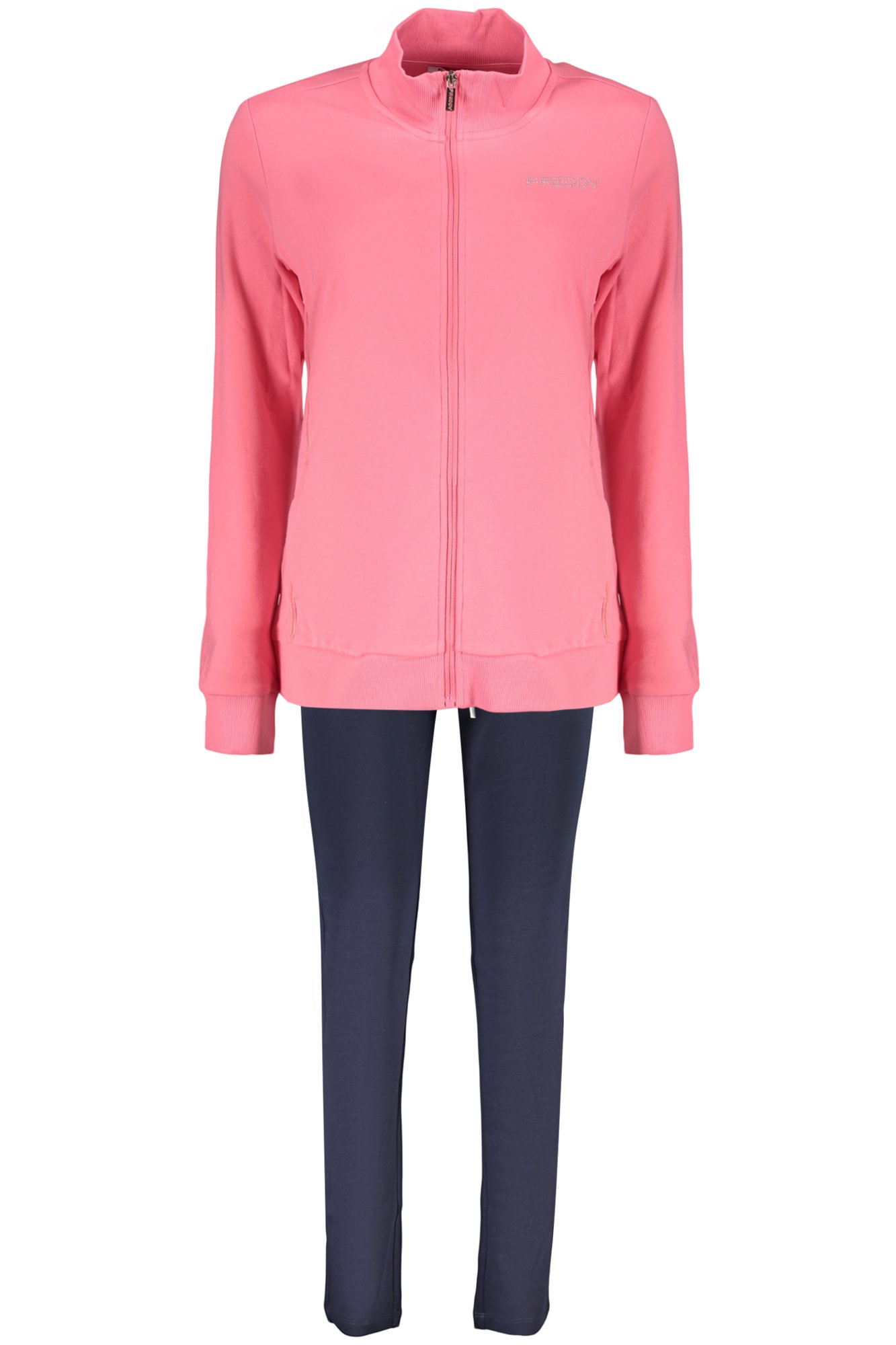 SET FELPA E PANTALONE, FELPA MANICHE LUNGHE ROSA, 2 TASCHE, ZIP, DETTAGLI A CONTRASTO, PANTALONE SPORTIVO BLU, ELASTICO IN VITA CON LACCI, APPLICAZIONE STRASS, STAMPA, LOGO