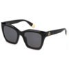 occhiale da sole, montatura in acetato, lente quadrata, lente nera, dettagli a contrasto, larghezza lente 53 mm, larghezza del ponte 19 mm, lunghezza asta 140 mm, logo