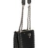 BORSA NADIRA, 2 MANICI A SPALLA IN CATENA, 3 TASCHE ESTERNE, 1 TASCA INTERNA, SPAZI INTERNI PORTATELEFONO, DETTAGLI A CONTRASTO, CHIUSURA CON ZIP E AUTOMATICI, PIEDINI PROTETTIVI, LOGO