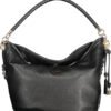 BORSA DANYA, 1 MANICO A SPALLA, TRACOLLA REGOLABILE E REMOVIBILE, 1 TASCA ESTERNA, 1 TASCA INTERNA, SPAZI INTERNI PORTATELEFONO, PORTACHIAVI REMOVIBILE, DETTAGLI A CONTRASTO, CHIUSURA CON AUTOMATICO, PIEDINI PROTETTIVI, LOGO