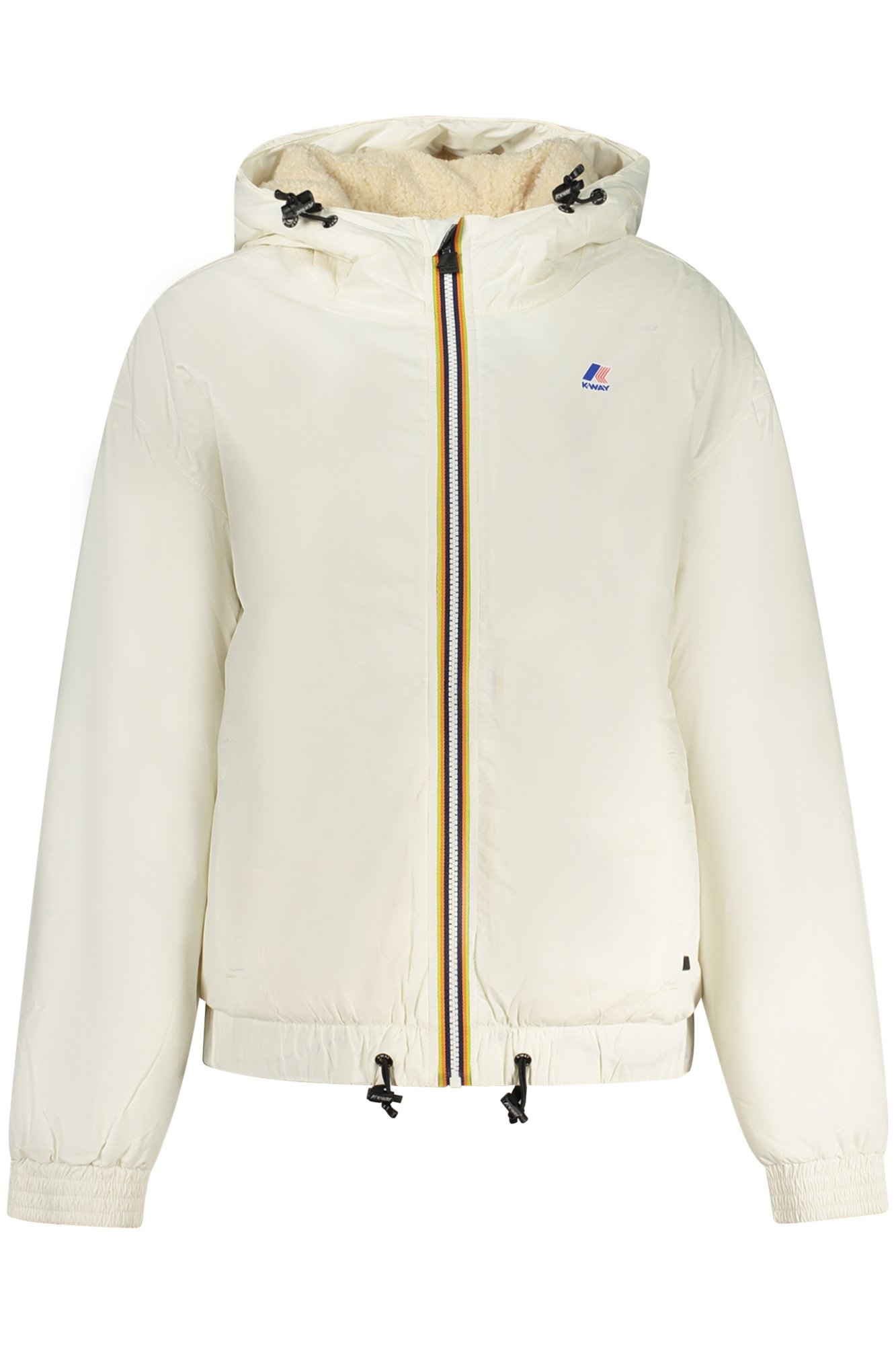 GIUBBOTTO MANICHE LUNGHE CON CAPPUCCIO, 2 TASCHE ESTERNE, 3 TASCHE INTERNE, INTERNO ORSETTO, ZIP, STAMPA, TRASPIRANTE, ANTIVENTO, IMPERMEABILE, CUCITURE NASTRATE, LOGO, RECYCLED
