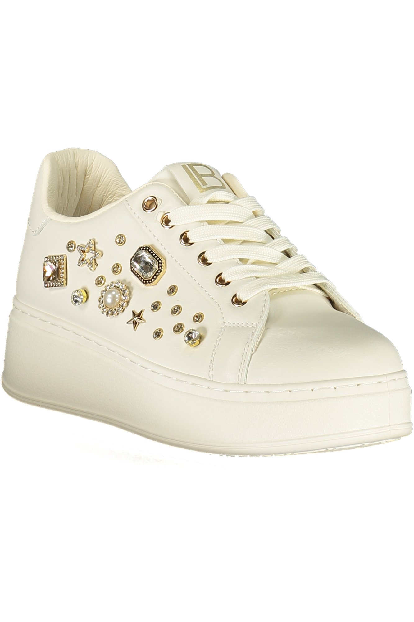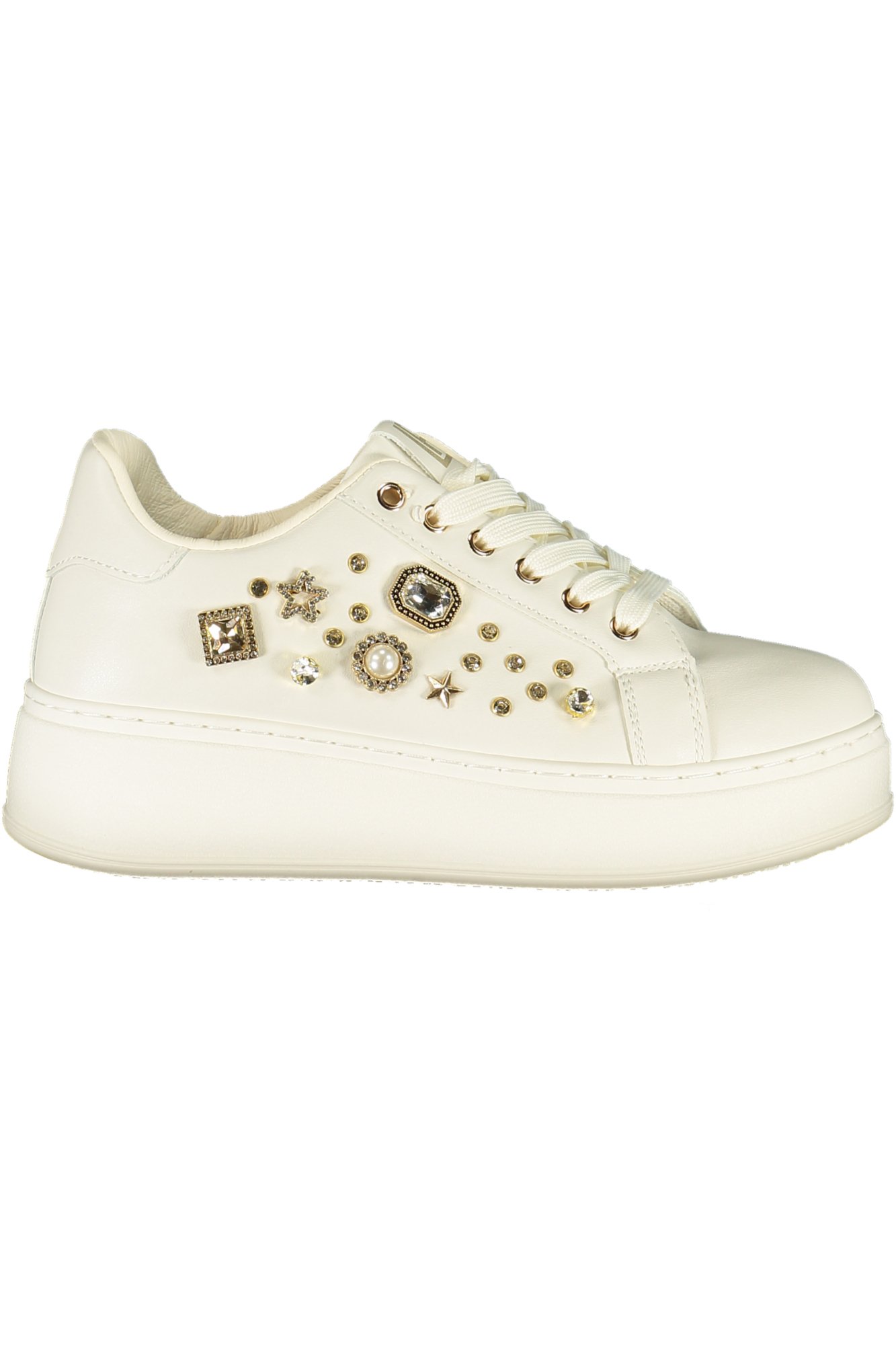 CALZATURA SPORTIVA CON LACCI, DETTAGLI A CONTRASTO IN NERO, APPLICAZIONI STRASS, LOGO