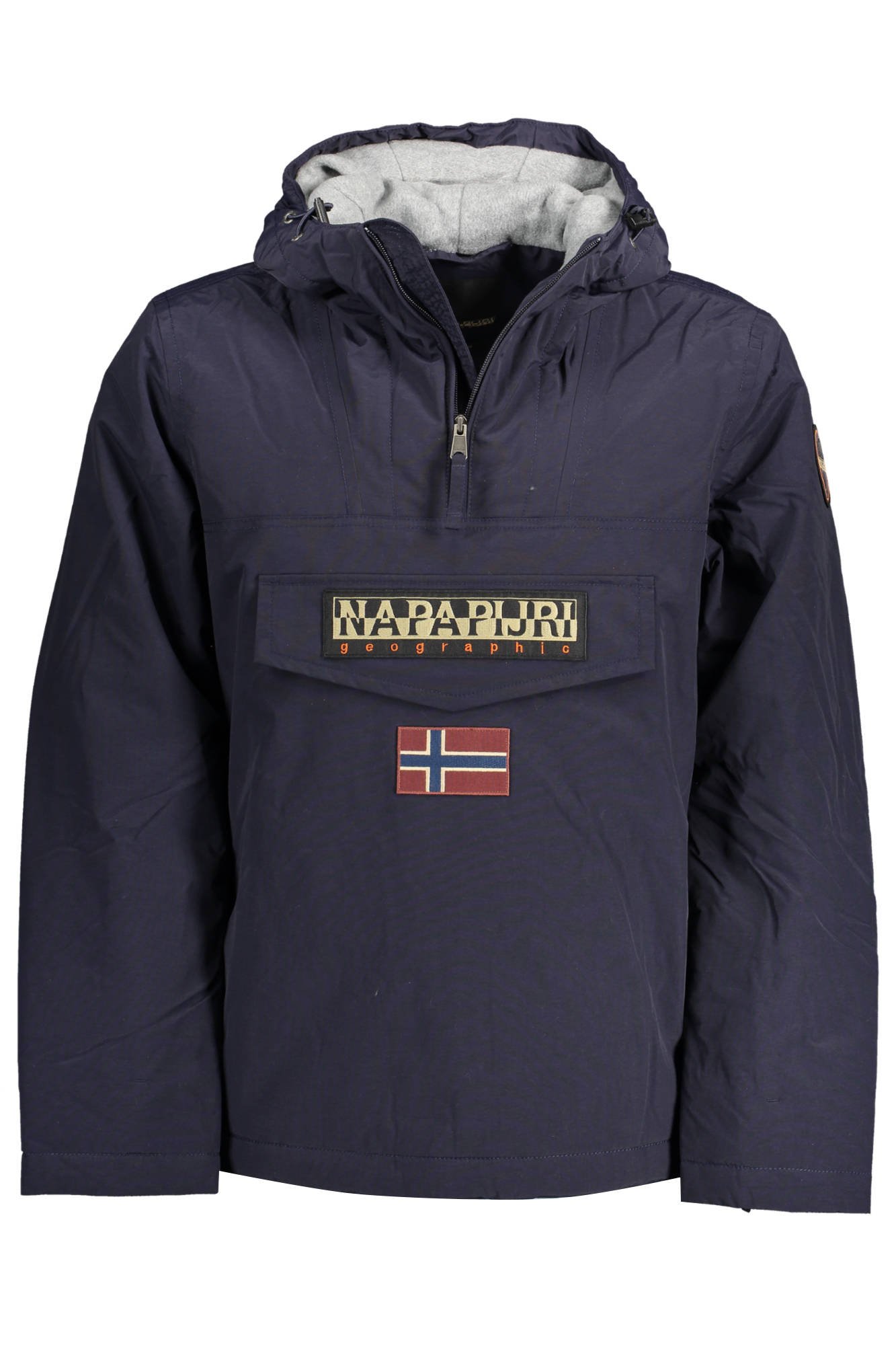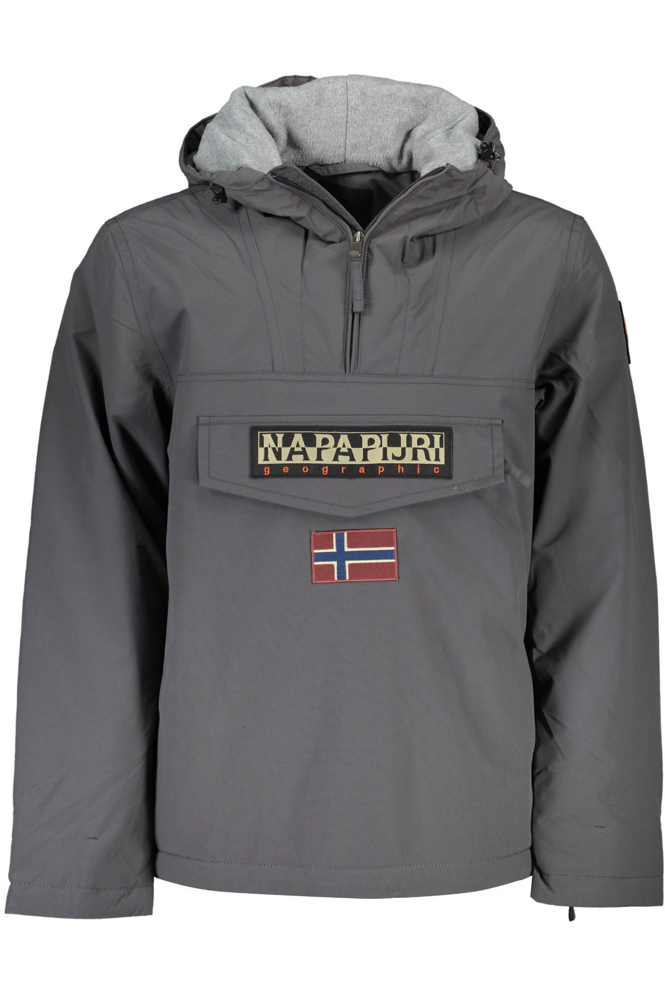 giubbotto rainforest maniche lunghe, cappuccio, 1 tasca centrale con chiusura a zip e felcro, zip laterale, applicazione, logo, 30% materials recycled