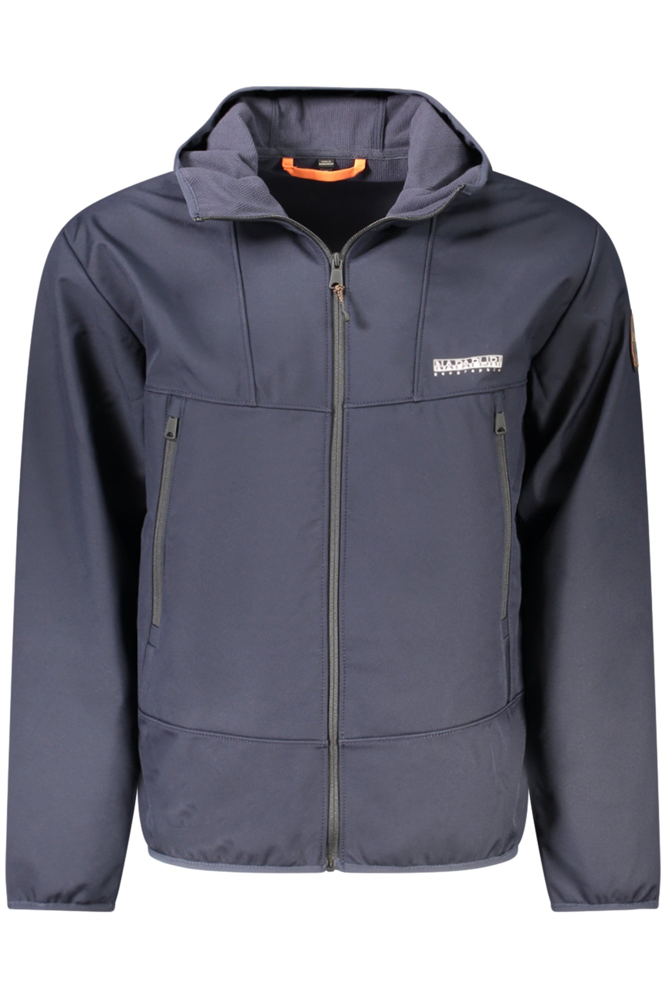 GIUBBOTTO MANICHE LUNGHE CON CAPPUCCIO, RELAXED FIT, 2 TASCHE ESTERNE, ZIP, STAMPA, APPLICAZIONE, LOGO, 70% MATERIAL RECYCLED