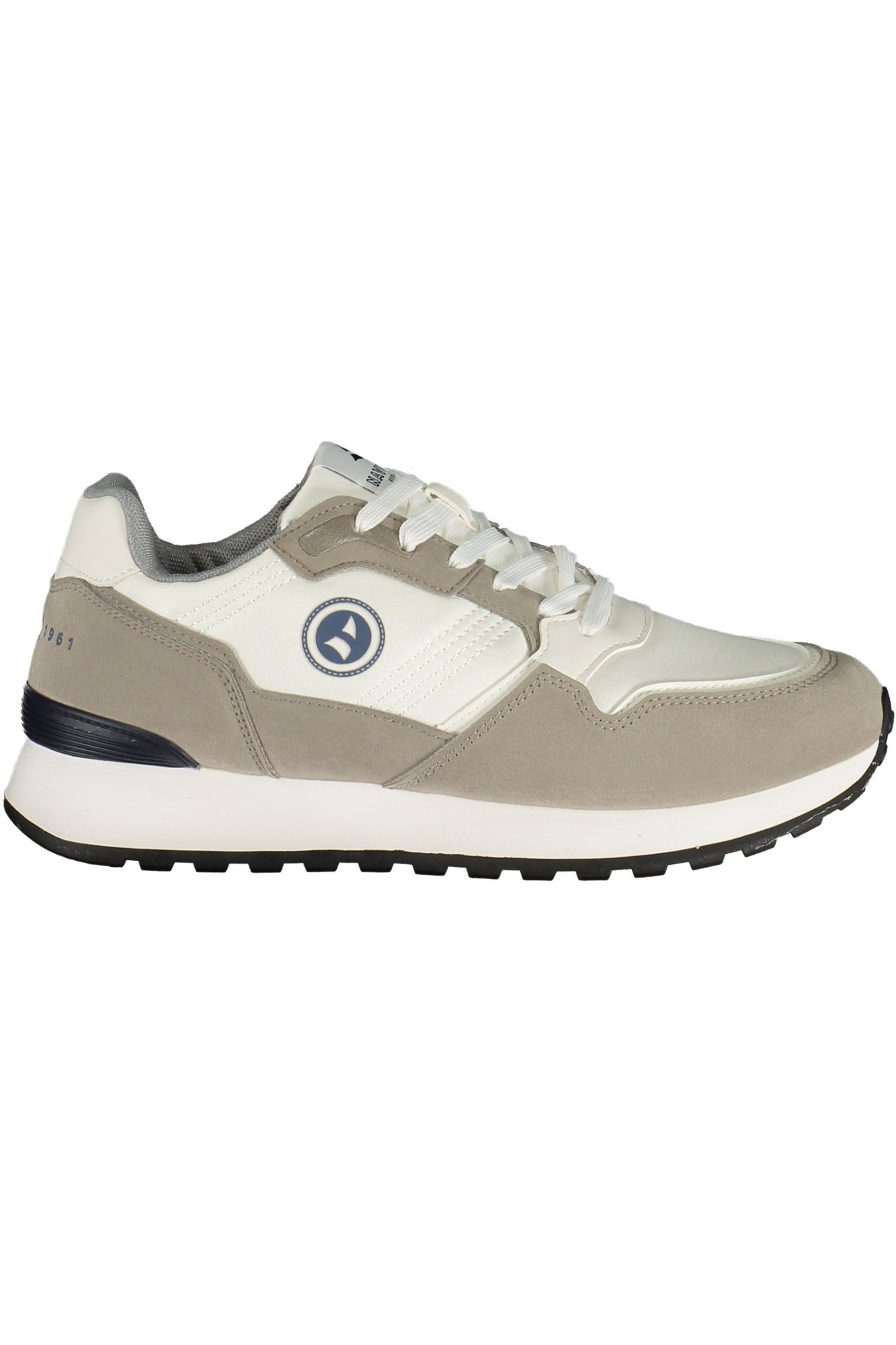 CALZATURA SPORTIVA CON LACCI, NETTUNO, PLANTARE REMOVIBILE, DETTAGLI A CONTRASTO IN BIANCO/GRIGIO, STAMPA, LOGO