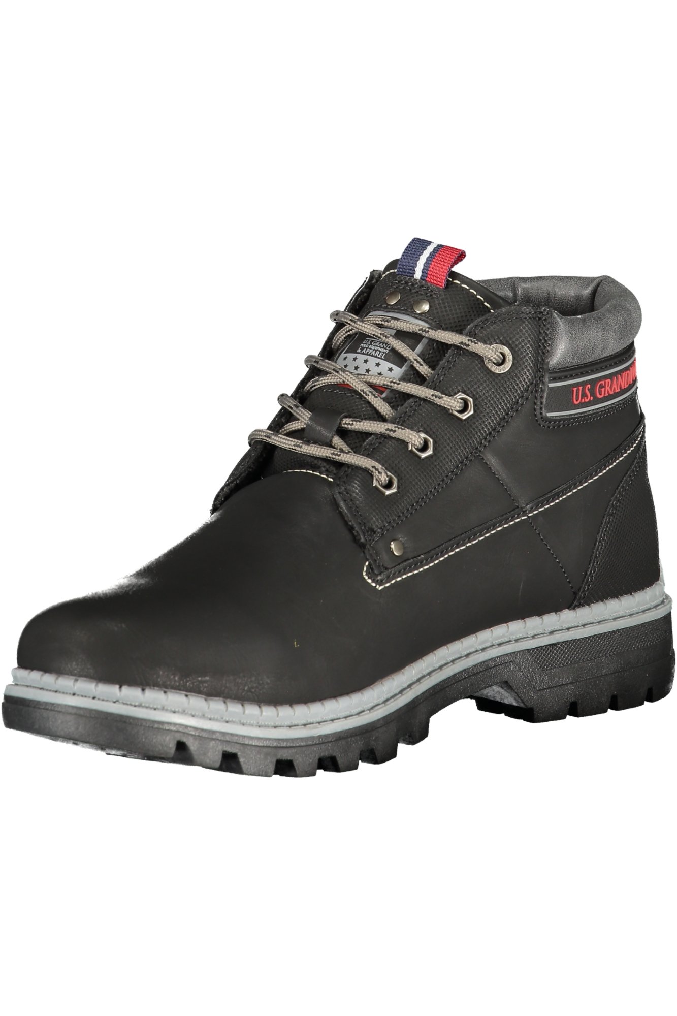 STIVALETTO CON LACCI, DETTAGLI A CONTRASTO, STAMPA, LOGO